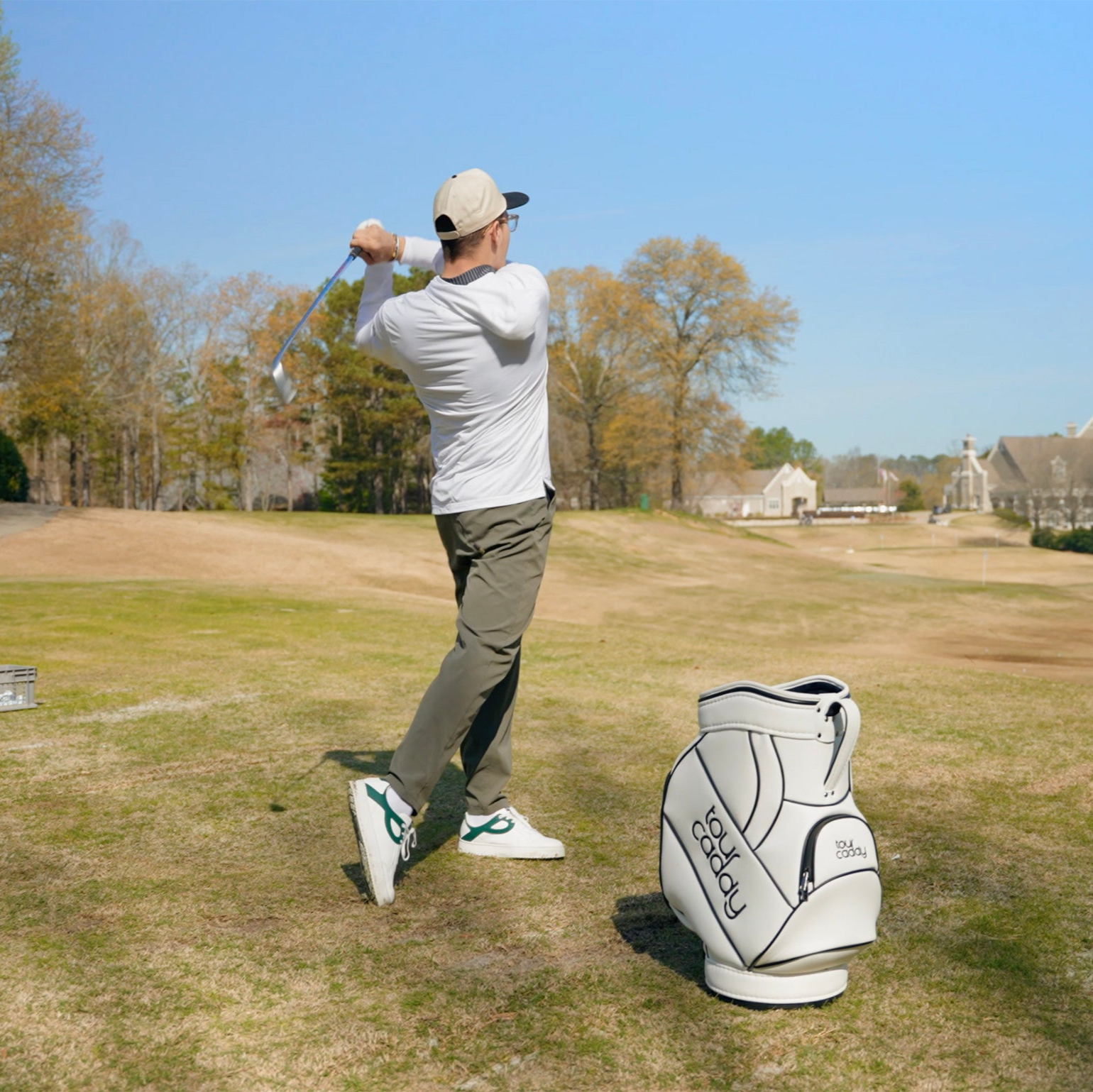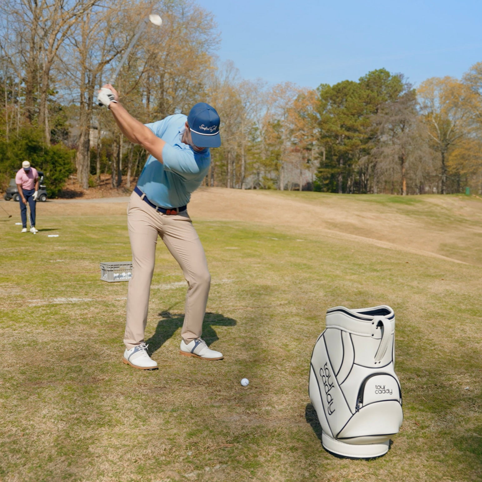 Tour Caddy is your smart driving range companion. Just wave your club — and like magic, a golf ball rolls out, ready for your next shot.